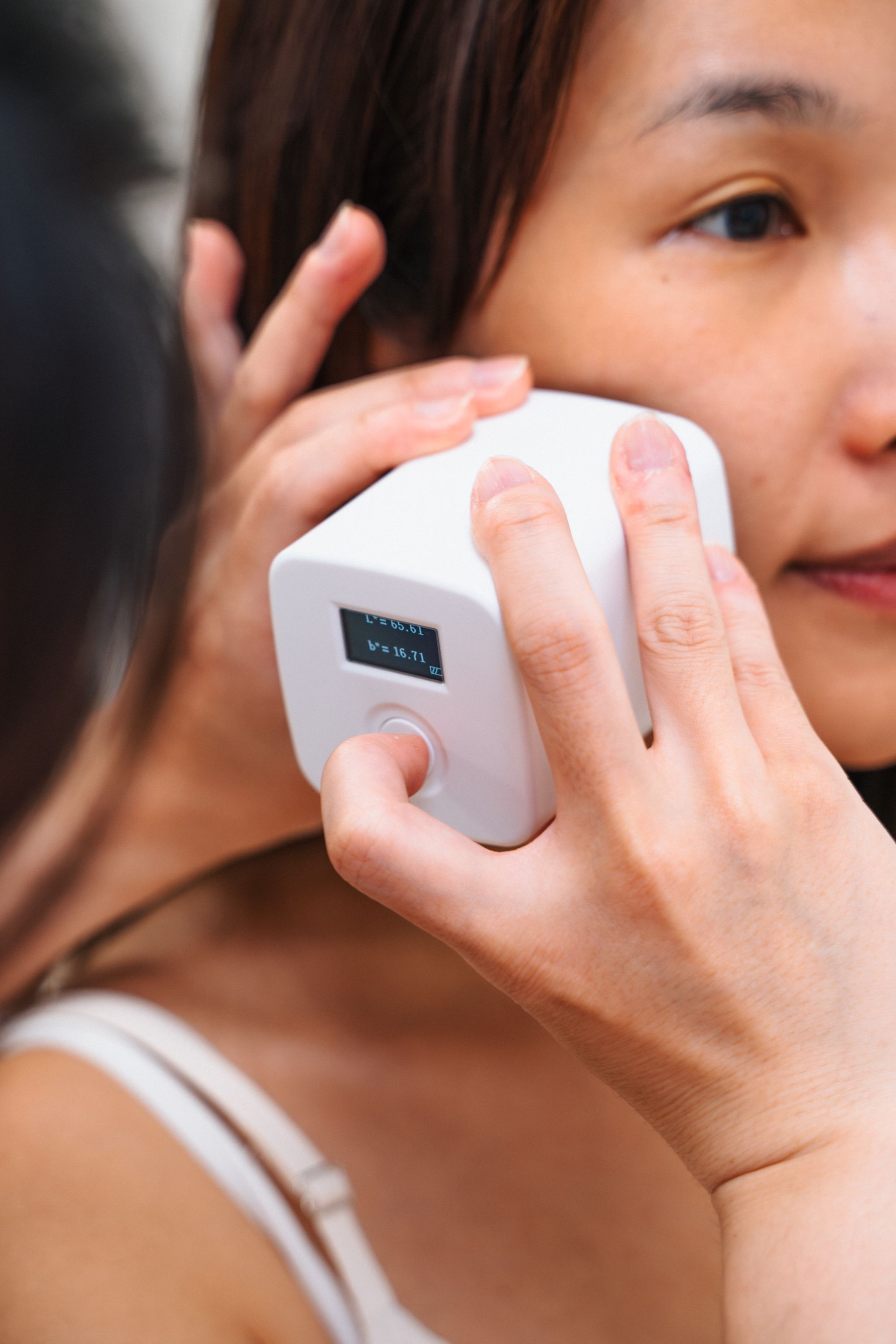 線上測色會透過人臉追蹤、光線調節以及色彩感應的方式去做多重分析,是我的獨家專利技術,檢測的結果,與線下的結果相同,很適合眼睛度數較高或是平常不戴隱形眼鏡的朋友,更能夠清楚的觀察到顏色的影響